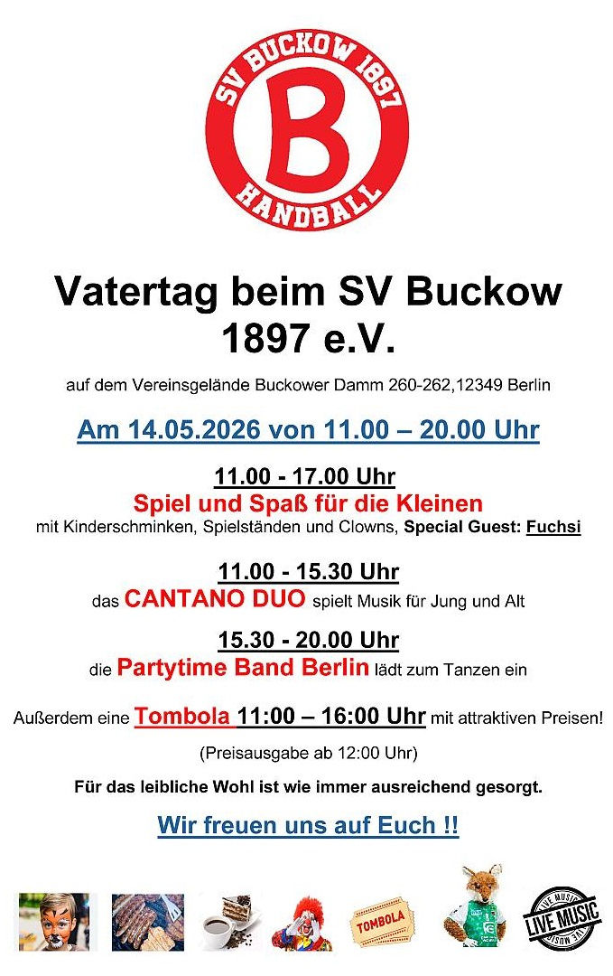 Am 14.05.2026 ab 11:00 Uhr gehtâs los â wir feiern Vatertag auf dem GelĂ€nde unseres Vereinsheims!